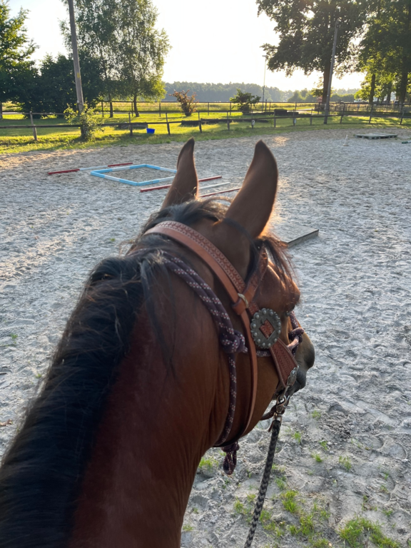 mitbrachte. Nach und nach lernte sie sich (an guten Tagen) mehr auf mich und die gestelllten Aufgaben zu konzentrieren und ab und zu mal die Verantwortung abzugeben. Ich konnte Hilda an Sattel und