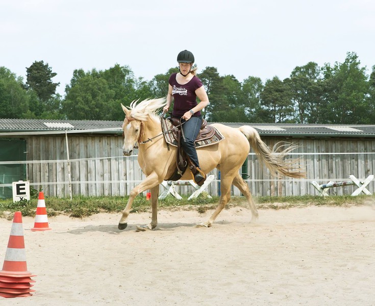 Im Februar 2015 fing ich an die beiden zu unterrichten und kurze Zeit später übernahm ich auch den Beritt von Emma. Mit abwechselndem Reitunterricht und Beritt vor Ort konnten wir schon große Fortschritte erzielen. Emmas Besitzerin hat ihre Angst verloren und galoppiert auf dem Reitplatz wieder entspannt mit ihrem Pferd. Auch ruhige Ausritte sind jetzt wieder möglich. Emma ist eine starke Persönlichkeit, doch wenn man ihr die richtigen Hilfen mit viel Gefühl gibt lässt sie sich sehr gut reiten und hat tolle weiche Gänge.